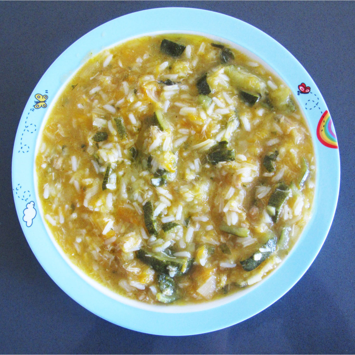 Se o bebé ainda for muito pequenino, convém desfazer uma bocadinho os legumes e o arroz. Mas se já tiver a prática da mastigação apurada, vai adorar a sua comidinha com mais texturas (como a T.).
