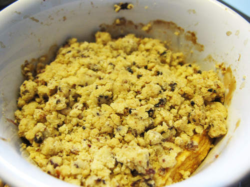 - Povilhar com o crumble por cima e levar ao forno por cerca de 30-40 minutos.