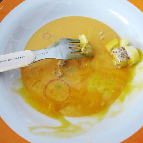 Eu voltei a experimentar e não consigo perceber porque a T. comeu quase tudo. Não gostei, não ficou como imaginei, não acho que seja receita digna de ir para a lista de receitas Na Cadeira da Papa. Declaro esta experiência um verdadeiro falhanço!