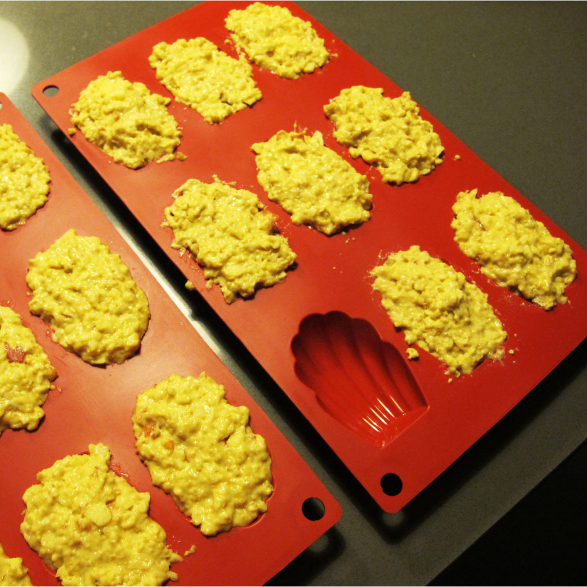 - Colocar a massa em montinhos num tabuleiro, ou em forma de queques ou madalenas e levar ao forno por 15 minutos.