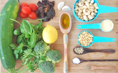 - A lasanha pode ser preparada individualmente em cada prato ou num recipiente conjunto. Começar com uma camada de curgete e adicionar uma camada de creme de cajú. Colocar uma fatia de curgete sobre o creme e adicionar uma camada do pesto de tomate e brócolos. Repetir o processo, terminando com uma camada de creme de cajú.